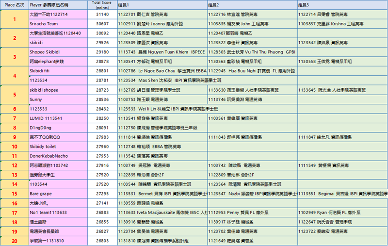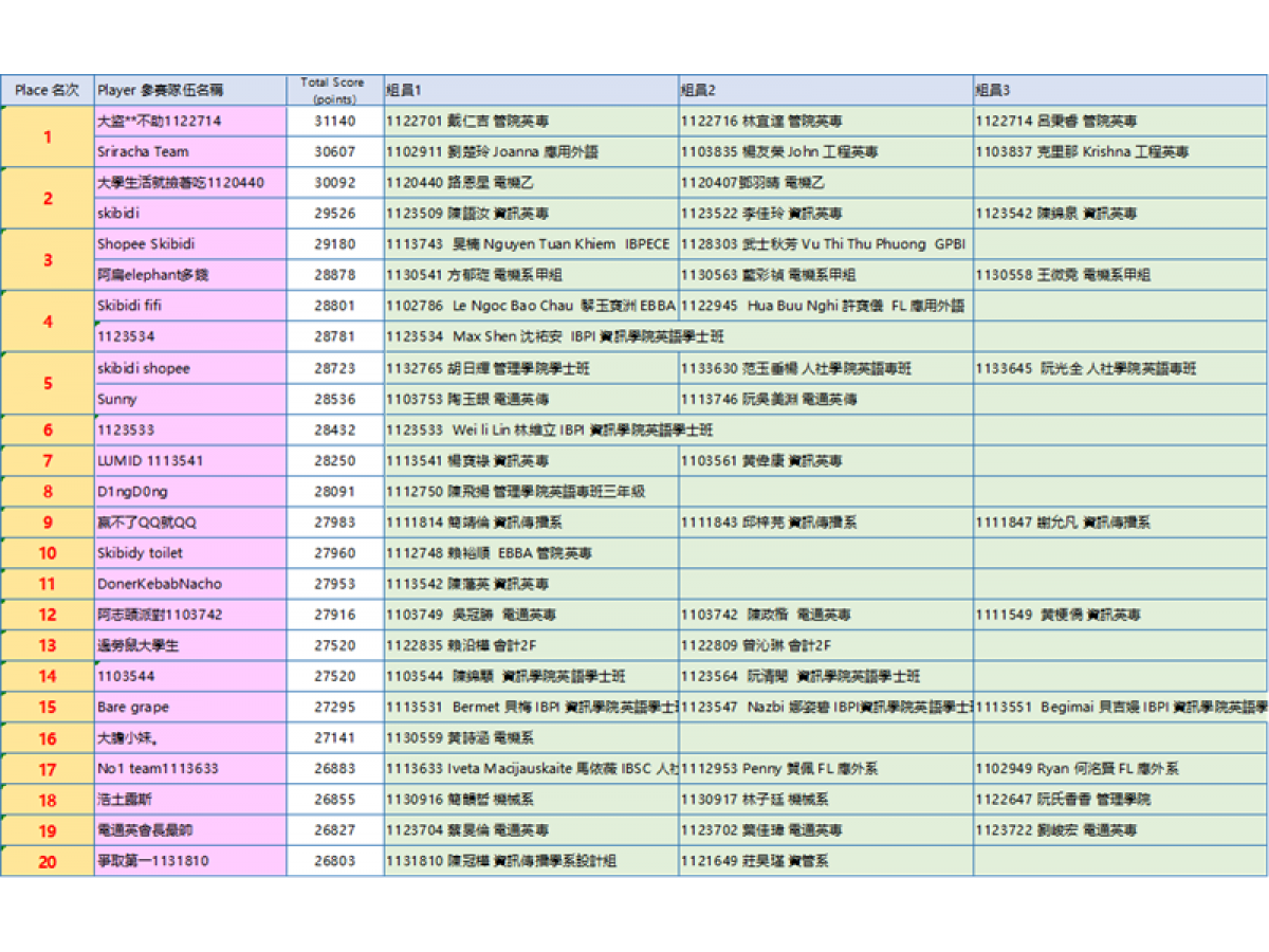 恭喜本系簡韻哲(S1130916)、林子廷(S1130917)同學獲團體組第18名。