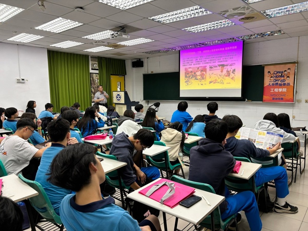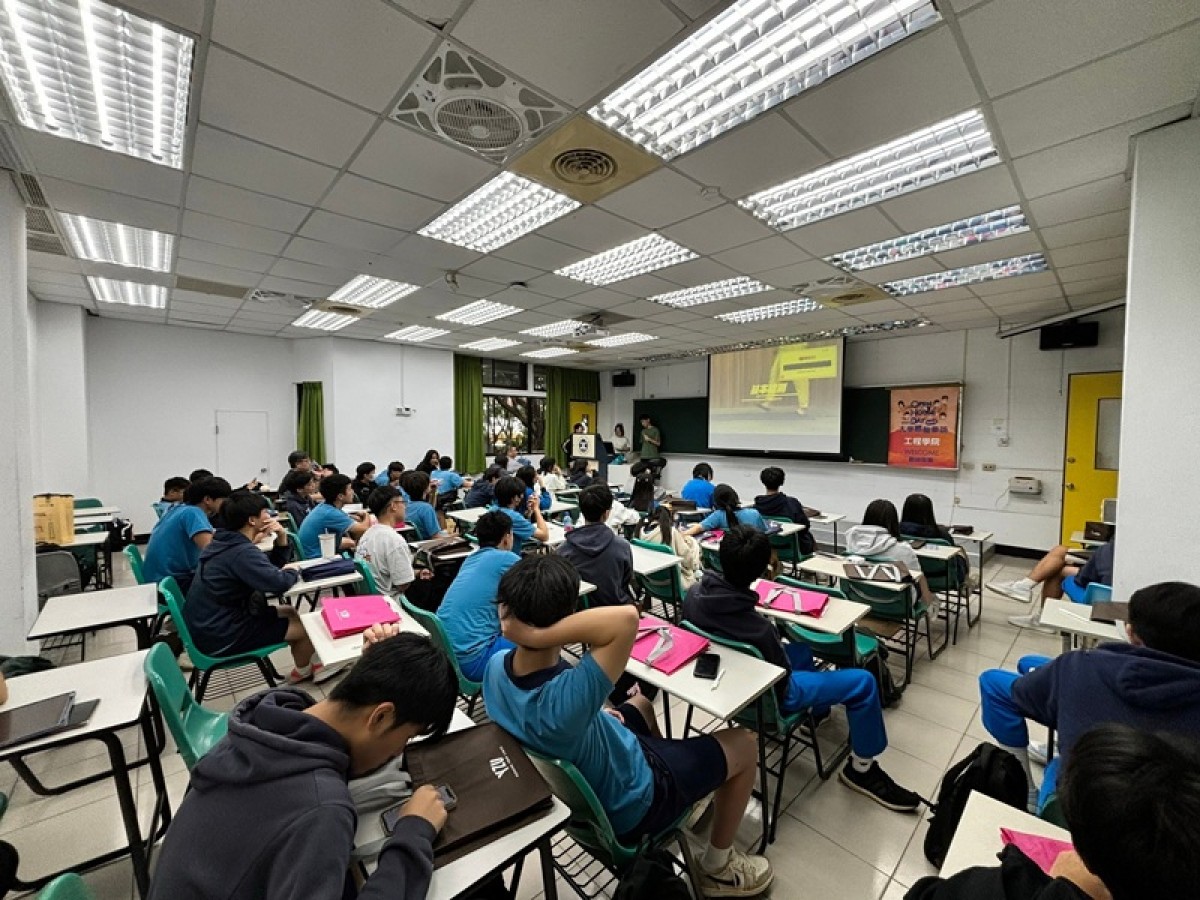 大華高中於113年11月5日約有43位師生蒞臨本院參訪,由機械系李其源教授簡介工院各系特色,其中機械系之體驗活動則由宋希愛及侯宇謙2位助教展示地墊遊戲活動,可協助老人、運動員或小孩觀測其行動力等功能。