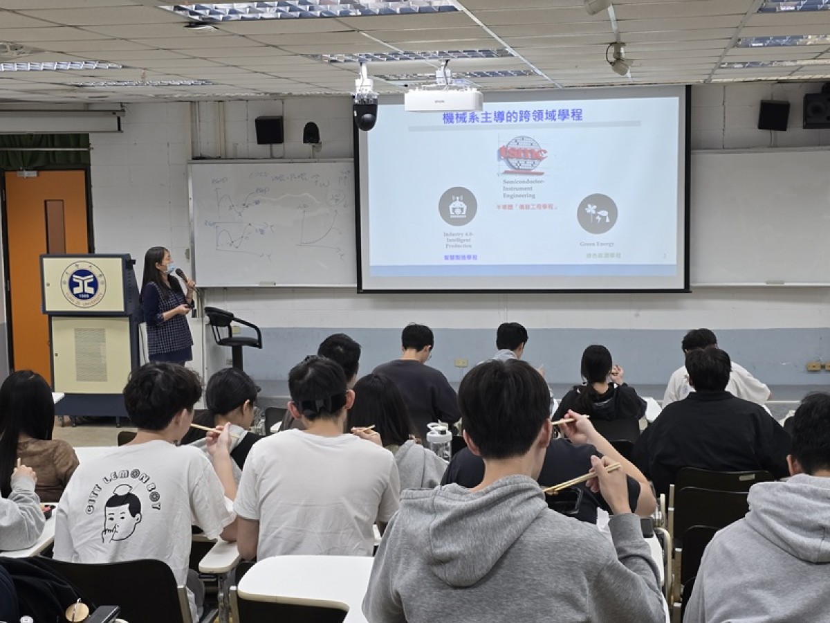 114年5月29日於R3208,由機械系江右君主任開場,介紹校園多元資源與完善學習環境及完善的實驗空間與創客教室,提供學生進行研究與實作練習,希望同學們在「做中學、學中做」的歷程中培養專業實力。鼓勵學生建立紮實的專業基礎,提早布局未來職涯,打造屬於自己的亮眼大學生涯。