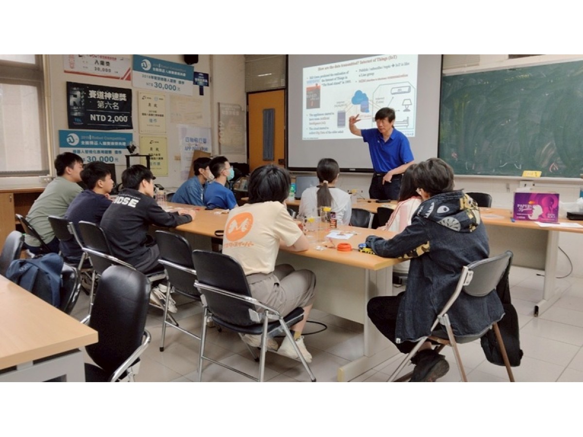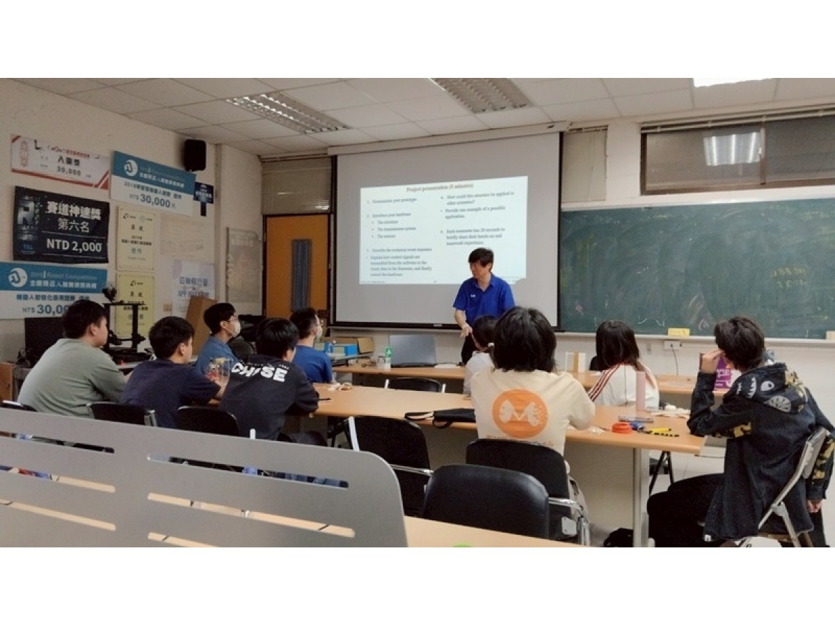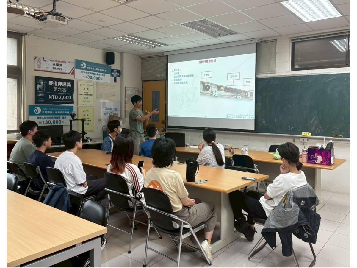 桃園市政府桃園國際城教育科技遊專案,針對高一~高三同學開設亮點課程,本系受邀於2025/05/17開設「傳動×電路×物聯網:解密自動門的進化之路」課程,由徐業良教授帶領3位助教,引導學生從生活情境出發,學習物聯網(IoT)基本概念與應用,透過實作一扇可遠端控制的自動門,理解電子控制與機構傳動的整合流程。學生將實際操作ESP8266、L298N、直流馬達等元件,並透過MQTT通訊協定,完成從手機App發送指令到自動門依照指示開門的完整系統設計,培養跨領域思維與實作能力。