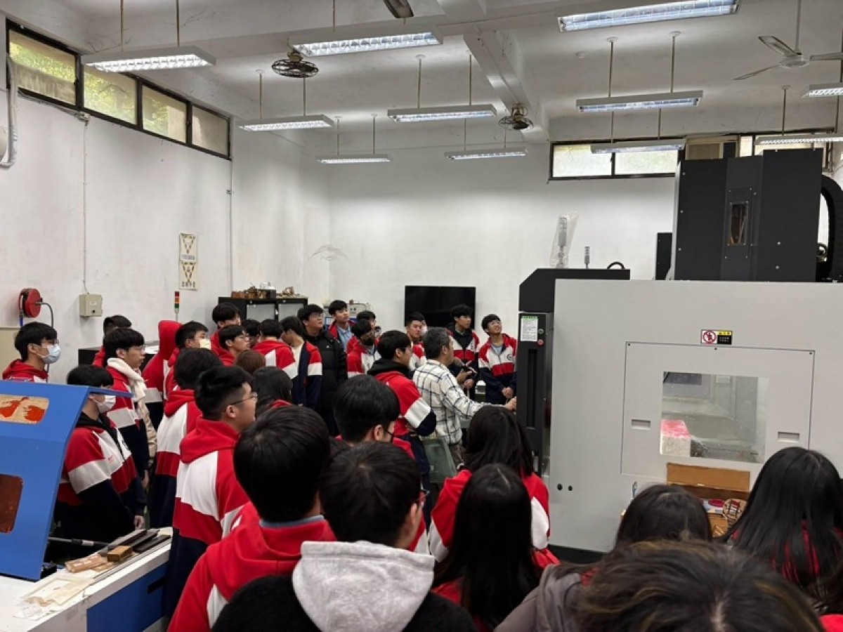 3/7(五) 參訪主題為CNC銑床加工,共計42位學生參與。CNC銑床是一種以電腦數值控制系統操作的機械加工工具,能夠高精度、高效率地製造各種零件,廣泛應用於機械、航太、汽車、模具、電子等產業。認識加工流程從零件繪製、刀具編輯、切削加工控制管理、實體模擬、產生NC加工碼後,現場實機加工,如此近距離體驗加工的環境。