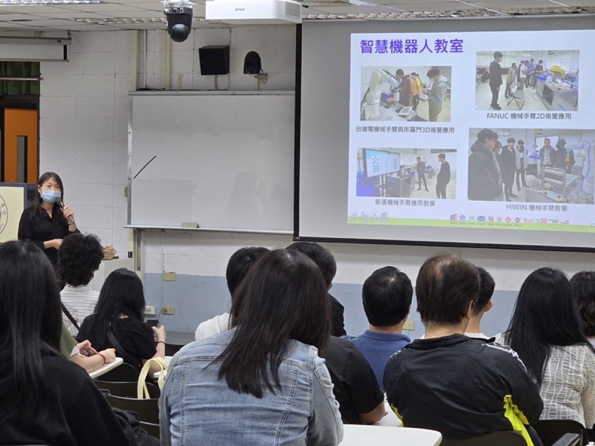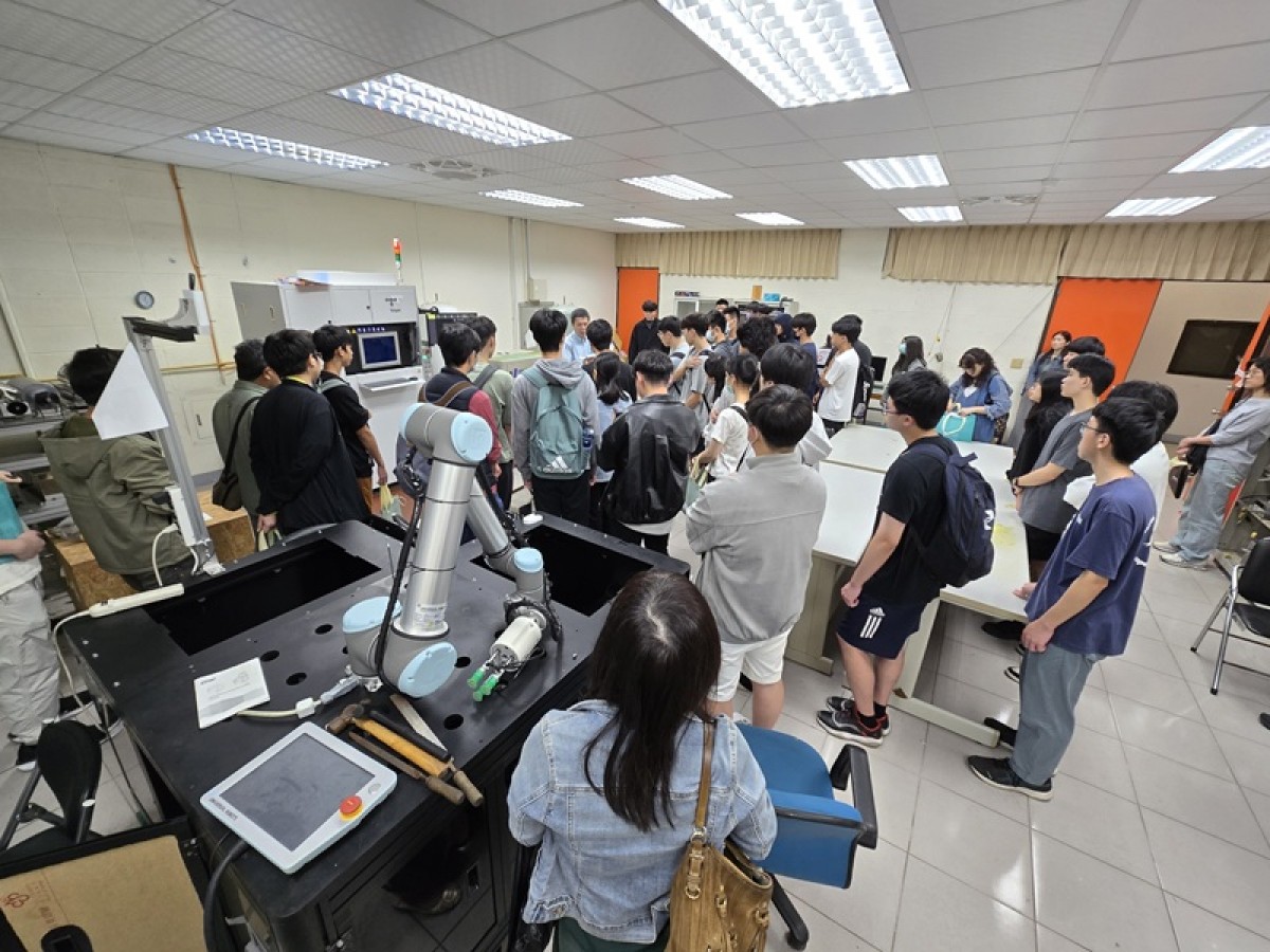 接著由本系技術人員徐瑞培場長帶領參觀儀器設備,詳細介紹學生日後將實際操作的實驗平台與實作工具,包含機械手臂、電腦輔助設備等,充分展現本系重視實作與跨領域學習的精神。此外,助教也特別介紹特色課程作品——閃避&投籃!機器人大對決,突顯本系課程與實務結合的成果。