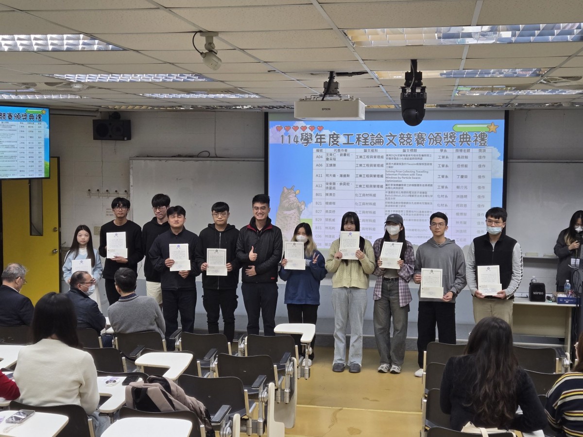 今年的參賽作品,不僅展現了同學們優秀的工程知識,更讓我們看到創新思維、實務能力與社會關懷的結合。每一篇論文背後,都有無數次的嘗試、修正與突破,也代表著在工程領域扎實的專業訓練與對問題求解的熱忱。