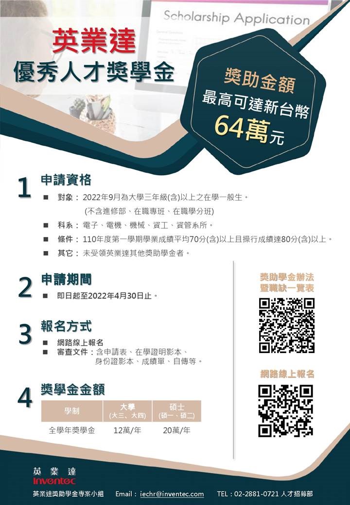 英業達優秀人才獎學金計畫-上網報名(4/30截止)