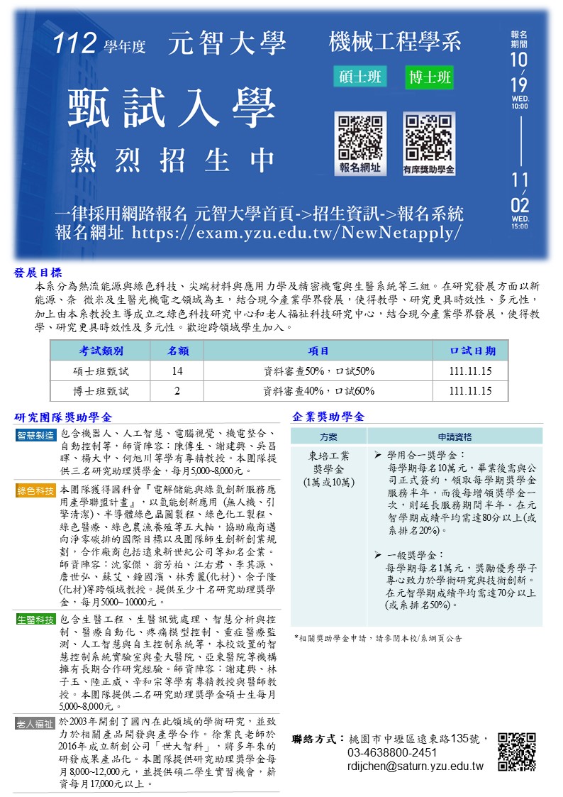 Yuan Ze University - Department of Mechanical Engineering