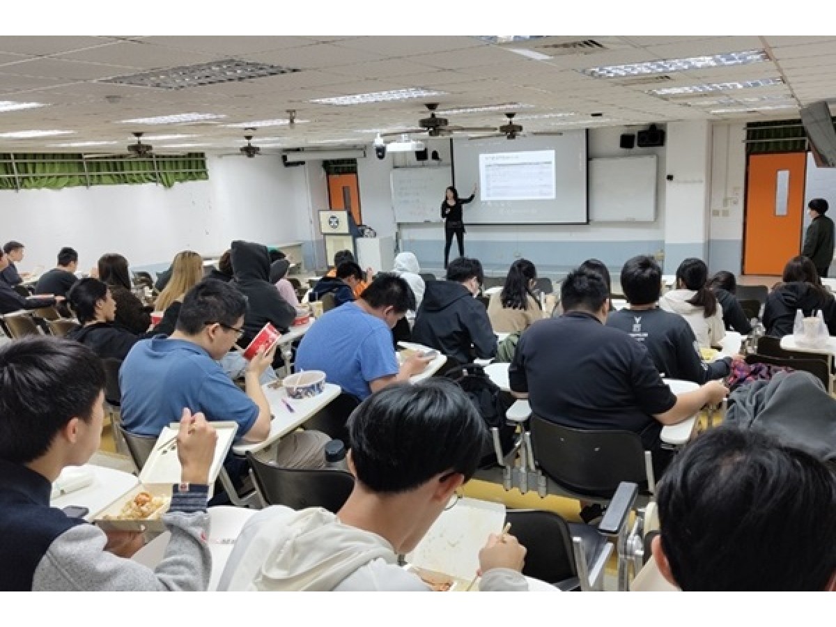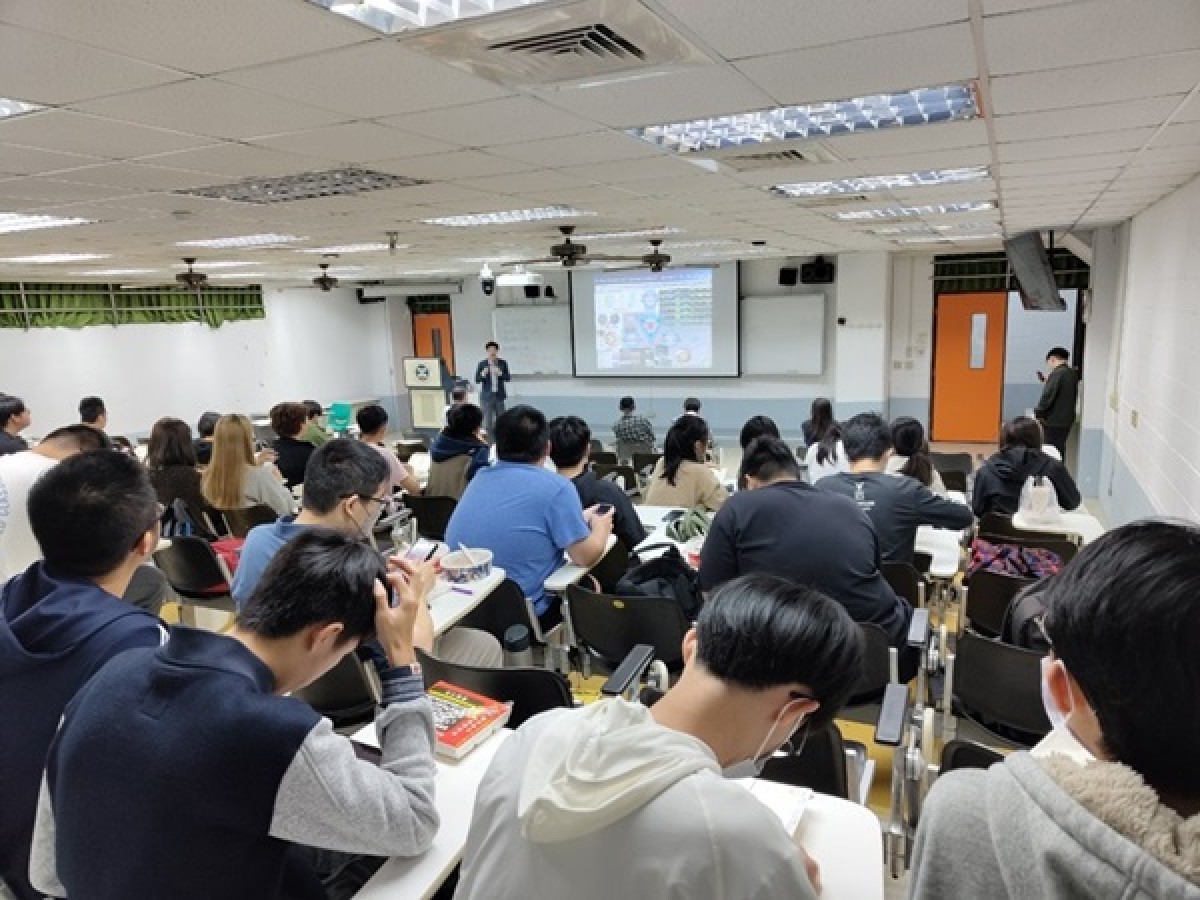在演講前,系上針對工院跨域學程進行宣導,介紹跨域學程的內容及修習技巧。透過這個機會,同學們將有機會深入了解工程學院的跨域學習機會,並學習如何更有效地運用自己的時間,培養跨領域思維及實踐技巧。
