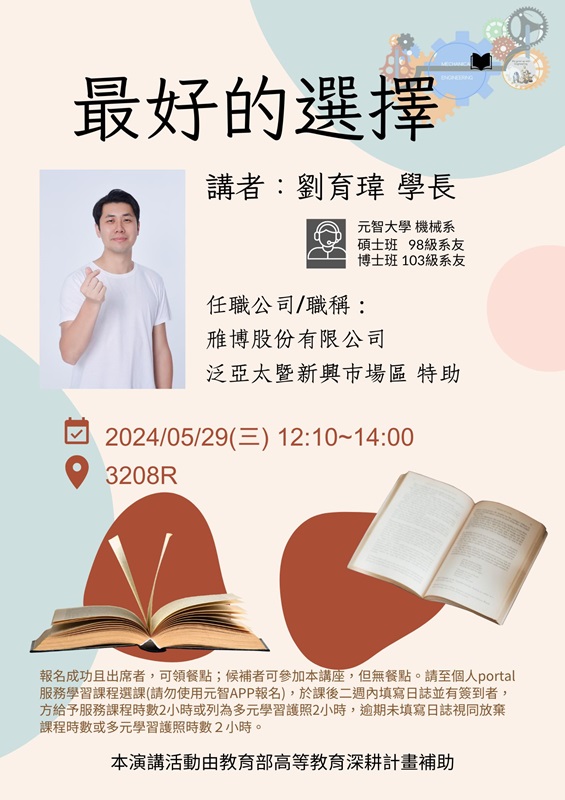 演講公告:最好的選擇113.05.29(星期三)12:10~14:00於3208R