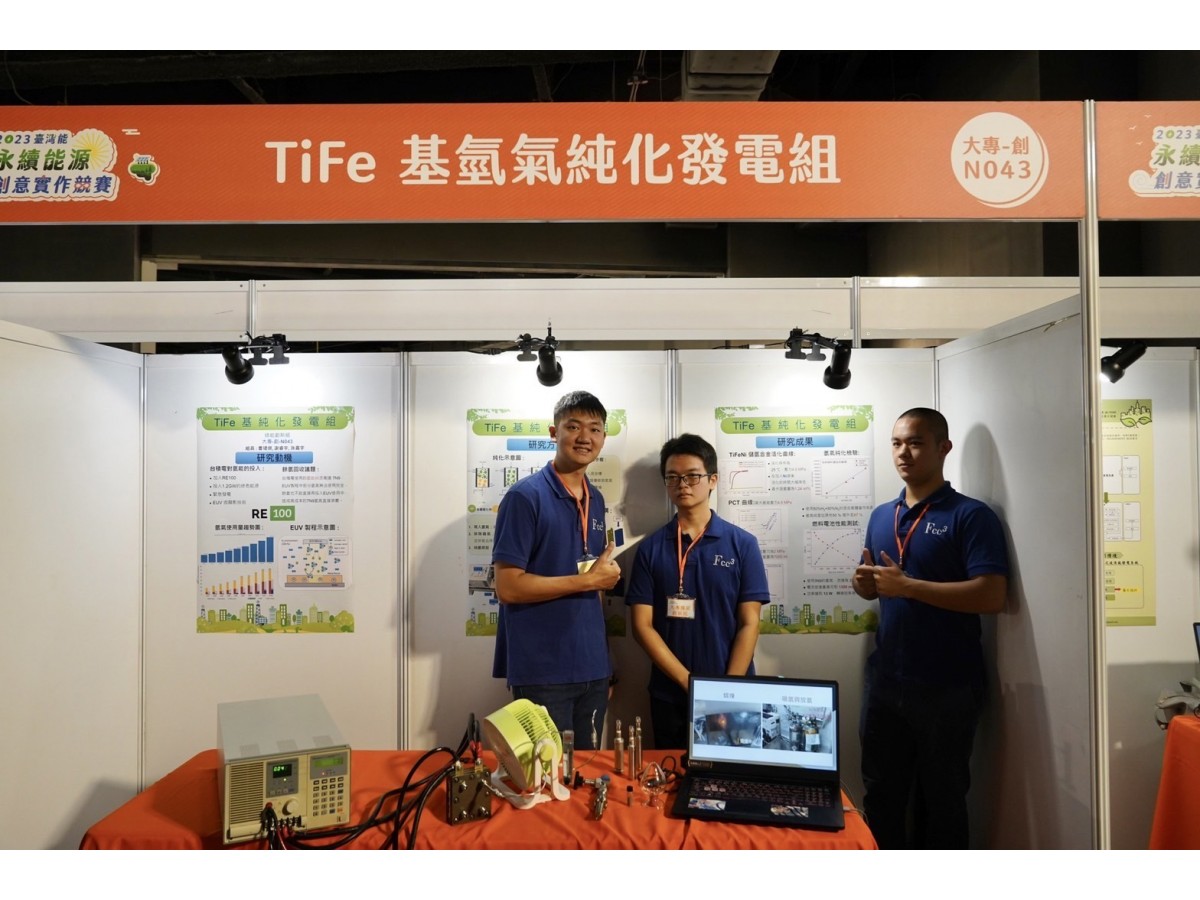 沈家傑老師帶領三位專題生謝睿宇、曹珺傑及孫嘉宇同學參加2023台灣能「永續能源創意實作競賽」綠能組的比賽。以「TiFe基氫氣純化發電組」榮獲金牌10萬奬金。